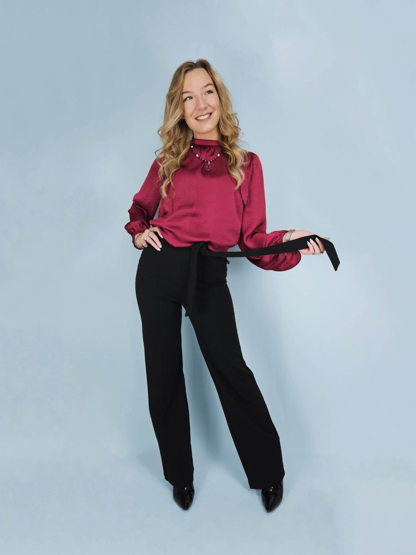 Get comfy! Deze geweldige broek sluit mooi aan en draagt super fijn! De tailleband is elastisch en er zit veel stretch in de stof. In de taille zit een mooie strikband die zowel gestrikt als geknoopt kan worden, maar de broek kan ook zonder band gedragen worden. De stof bestaat uit 96% polyester en 4% elastaan. Dit broekje voelt lekker stevig aan en draagt heerlijk in de winter! Al onze items worden met liefde gemaakt in Europa.