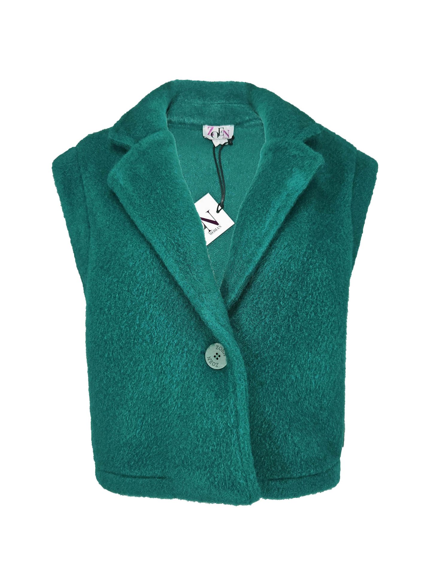 Fluffy emerald groen gilet met brand knoop.
