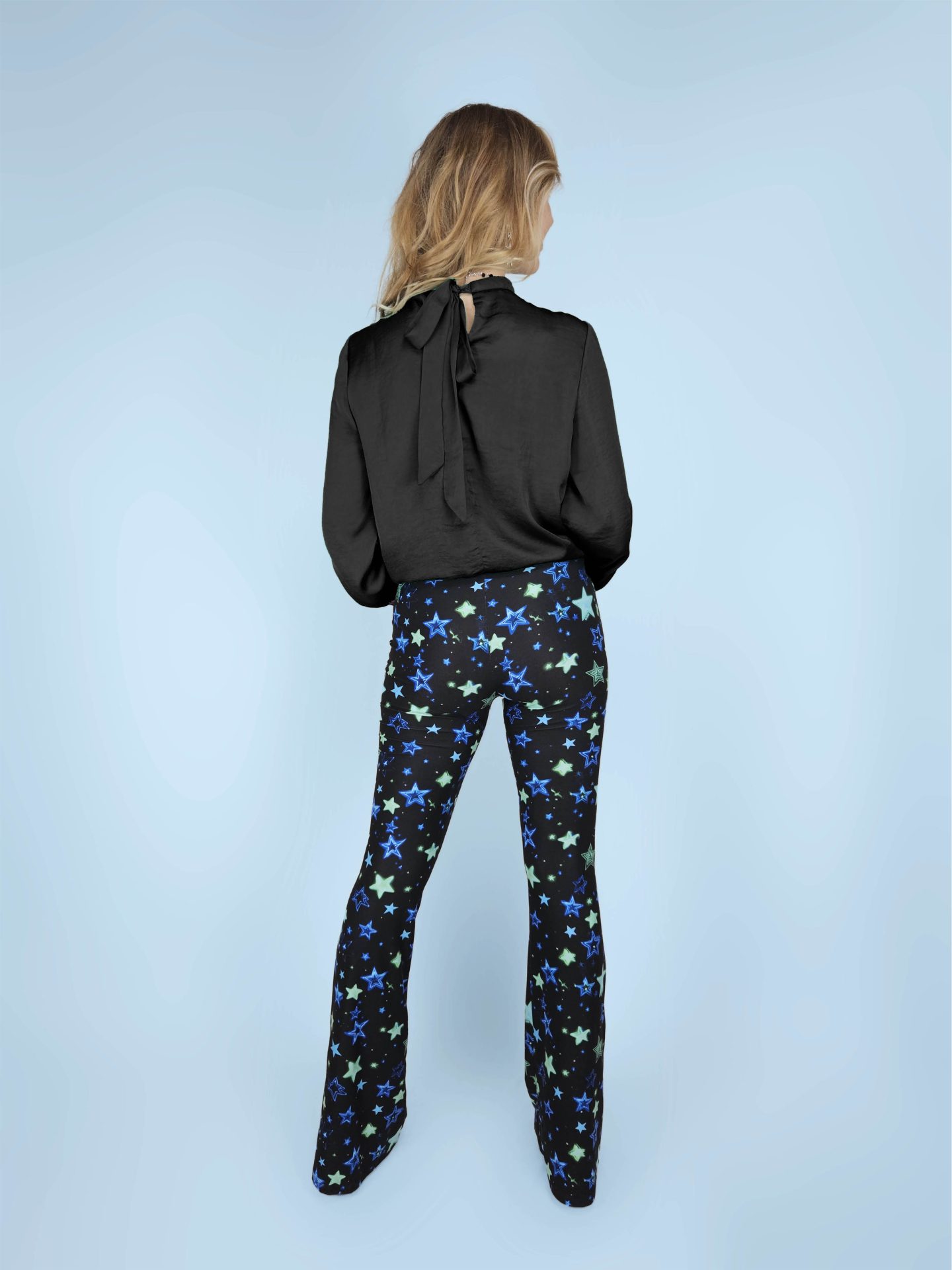 Let’s sparkle! De Fay blouse is een mooie satijnen blouse met ballon effect aan de onderzijde en plooitjes in de hals. In de nek sluit de blouse met een mooi strik detail. Doordat er plooien in de blouse zitten, komt de glans van de satijnen buiten stof extra naar voren. Aan de onderzijde zit elastiek, waardoor je de blouse over een broek kunt dragen, maar ook omhoog kunt halen voor een “cropped” effect. Al onze items worden met liefde in Europa gemaakt! De satijnen buitenstof is 100% Polyester en de top is gevoerd met een Viscose/Elastaan (natuurlijk materiaal) voor extra draagcomfort. Ga jij stralen in onze Fay blouse?