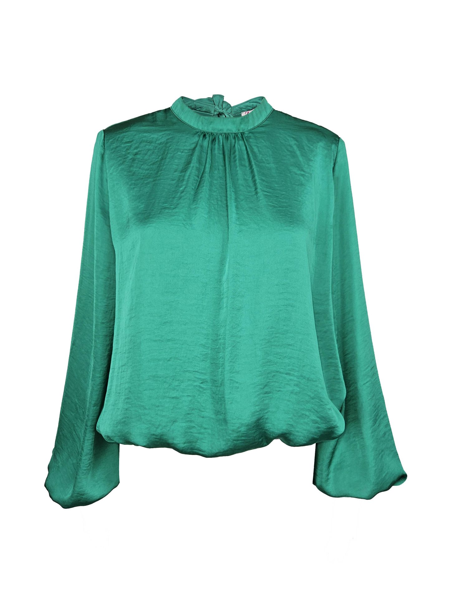 Let’s sparkle! De Fay blouse is een mooie satijnen blouse met ballon effect aan de onderzijde en plooitjes in de hals. In de nek sluit de blouse met een mooi strik detail. Doordat er plooien in de blouse zitten, komt de glans van de satijnen buiten stof extra naar voren. Aan de onderzijde zit elastiek, waardoor je de blouse over een broek kunt dragen, maar ook omhoog kunt halen voor een “cropped” effect. Al onze items worden met liefde in Europa gemaakt! De satijnen buitenstof is 100% Polyester en de top is gevoerd met een Viscose/Elastaan (natuurlijk materiaal) voor extra draagcomfort. Ga jij stralen in onze Fay blouse?