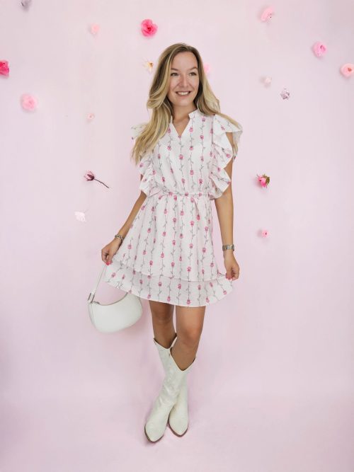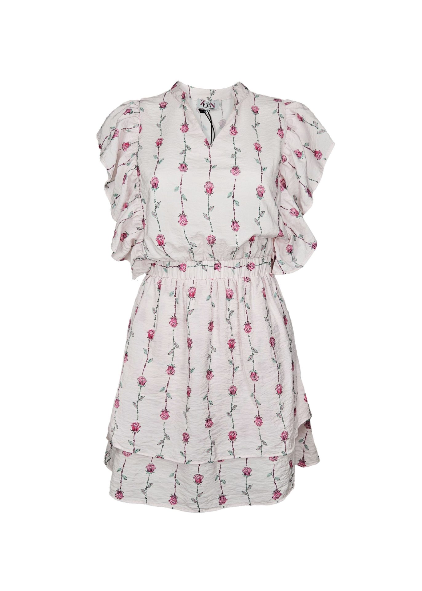 Ga jij een prachtige zomer tegemoet met de Gigi jurk? De romantische rozenprint is een eigen design van Zoen Woman, super uniek dus! In de waist heeft deze jurk een elastische tailleband voor een mooie fit. De ruffles aan de mouwen en de gelaagde rok geven de Gigi jurk een romantische uitstraling en geven een zomers gevoel. De stof draagt heerlijk luchtig en bestaat uit 88% Viscose (natuurlijk materiaal) en 12% Polyamide. Er zit een lichte kreuk in de stof en als je dit item na het wassen op hangt, hoeft er niet gestreken te worden! Model op de foto is 1,68m en draagt maat XS. Al onze items zijn met liefde gemaakt in Europa.